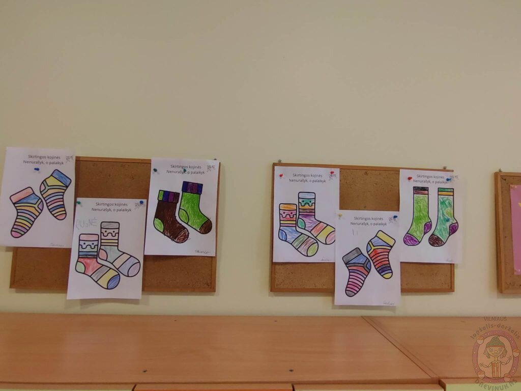 Mūsų darželio bendruomenė dalyvavo socialinėje akcijoje „Nenurašyk, o palaikyk“. 2023 kovo 21 d. – Pasaulinė Dauno sindromo diena, kurią mūvimos skirtingos kojinės išreiškiant palaikymą ir toleranciją žmonėms su Dauno sindromu bei jų šeimoms. Skirtingos kojinės simbolizuoja kitoniškumą, tačiau jį nulemia tik viena chromosoma.